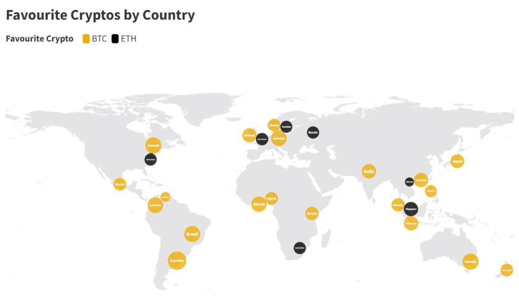 London, UK, May 4th 2022 – CoinText.com have compiled a study of the popularity of cryptocurrencies across nations, which concludes that Ethereum investors outnumber Bitcoin investors in 26% of countries worldwide, including the USA.